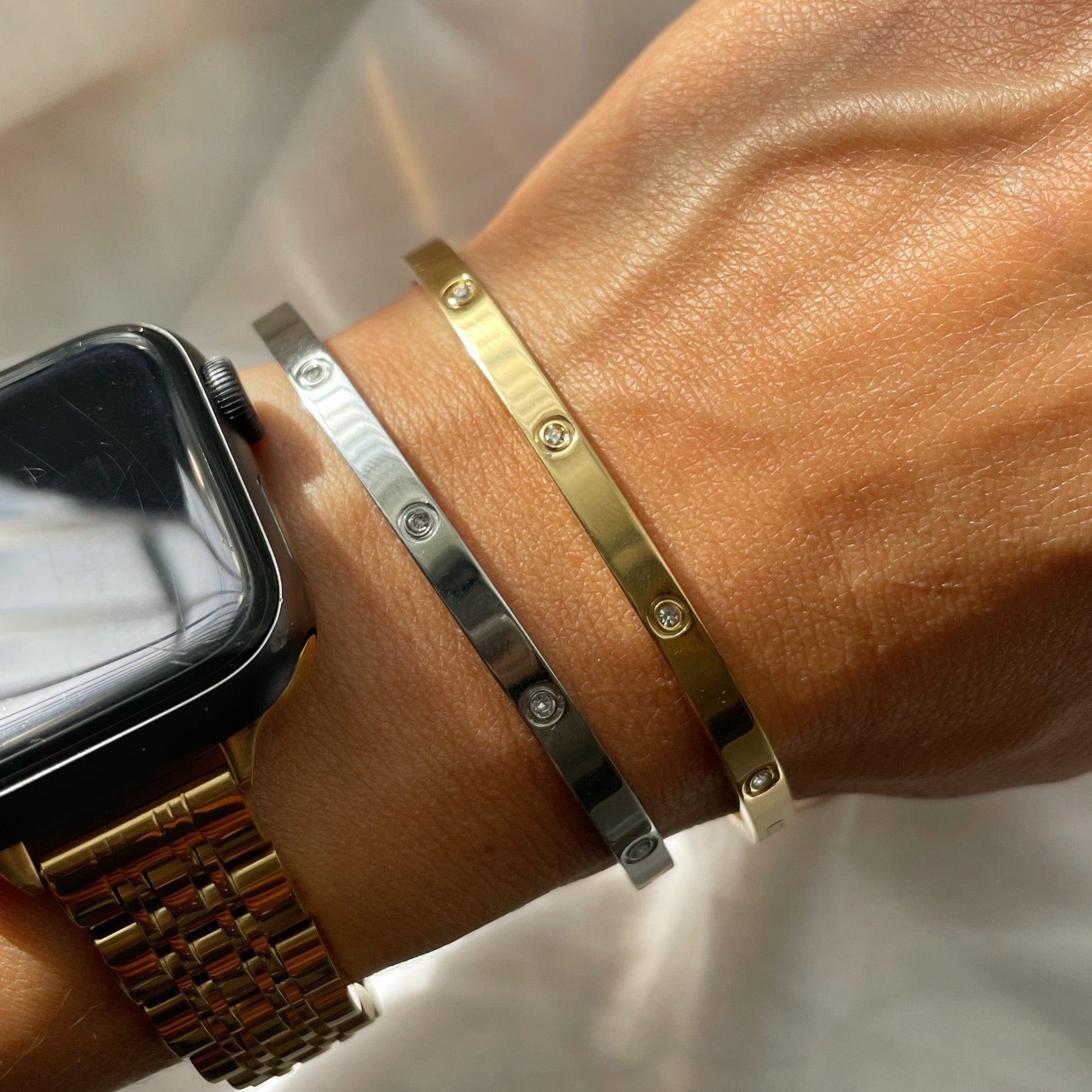Gold + Silver CZ Bangle Bracelet