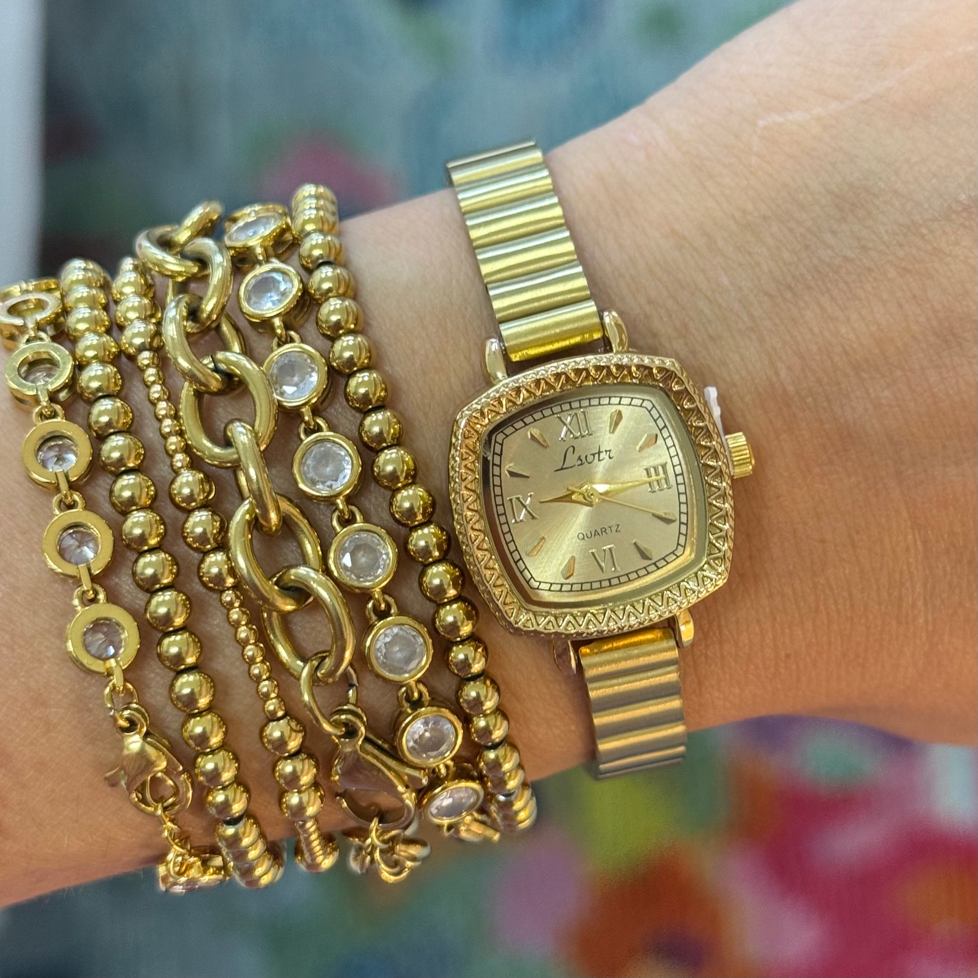 18k gold plated stainless steel watch - tarnish free.