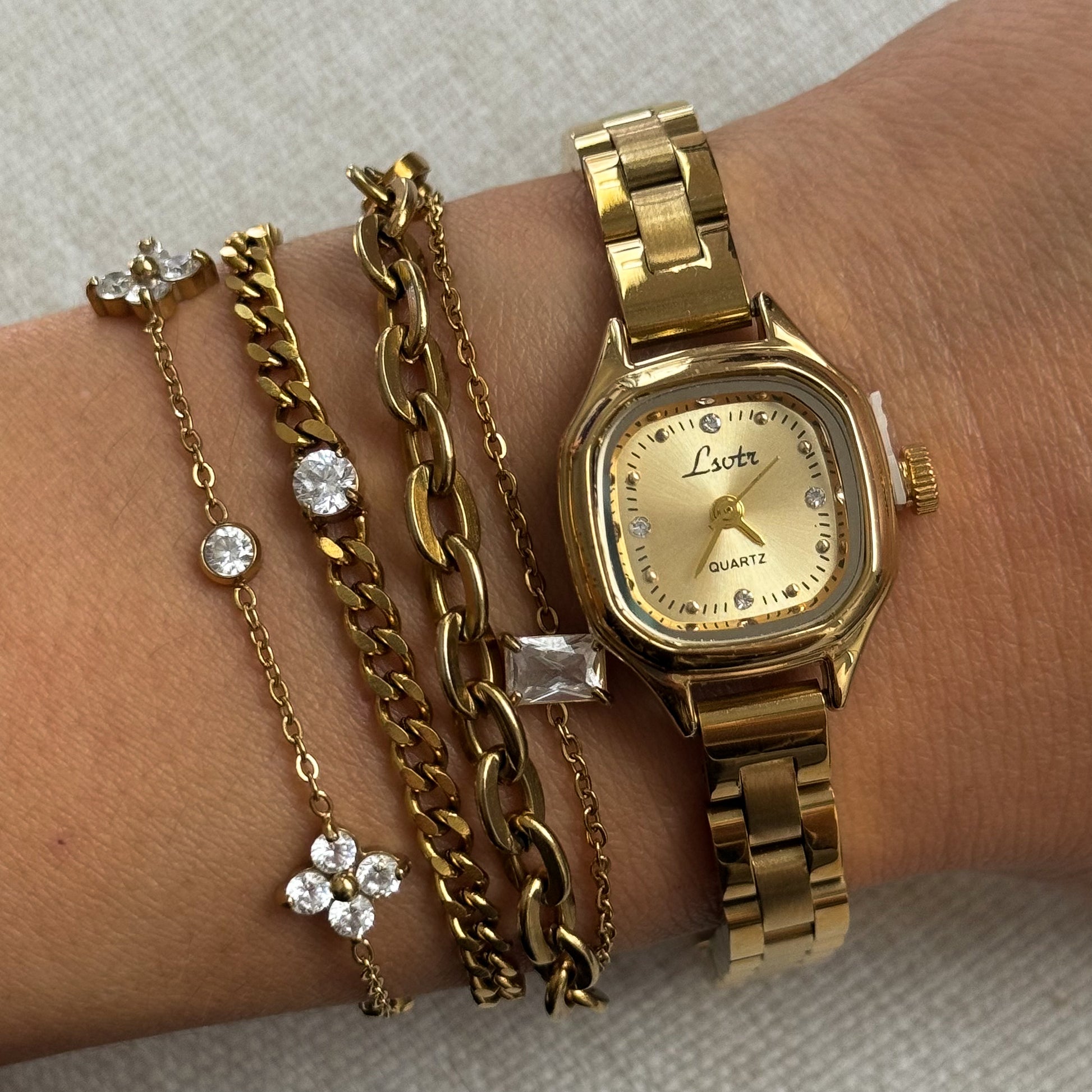 18k gold plated stainless steel watch - tarnish free.