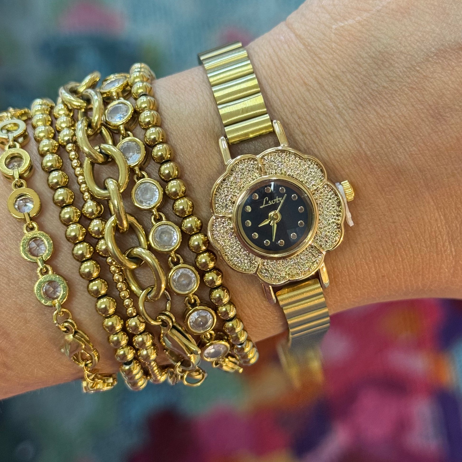 18k gold plated stainless steel watch - tarnish free.