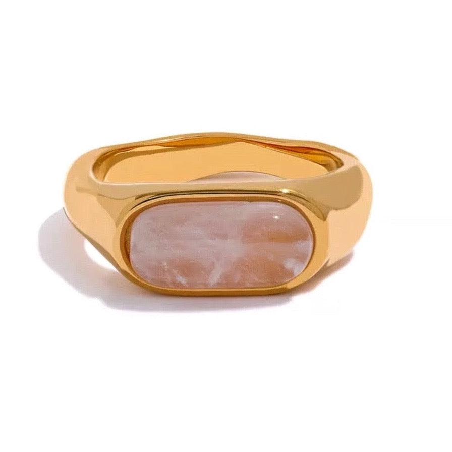 GOLD + BEIGE STONE RING