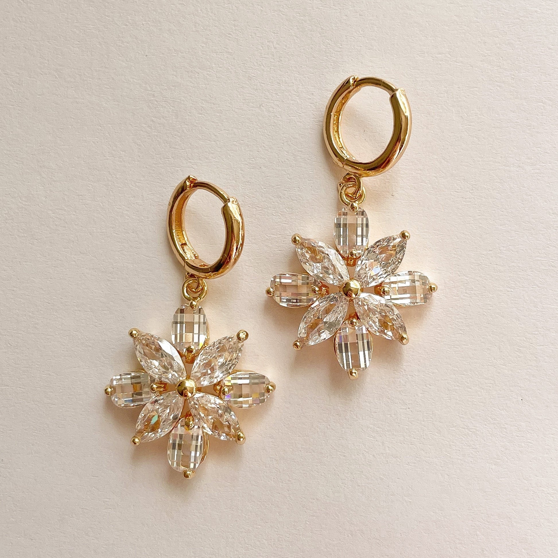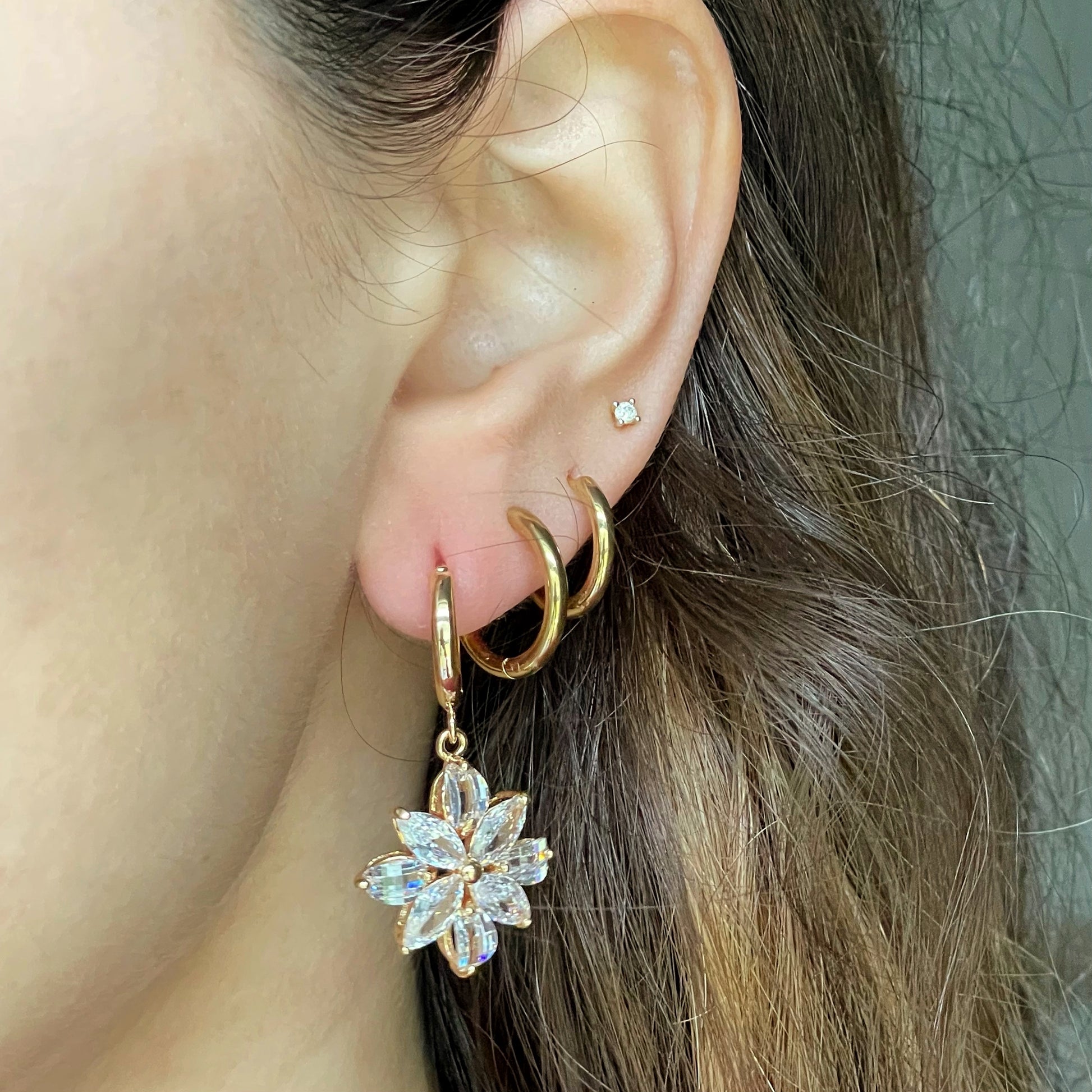 GOLD CRYSTAL FLOWER HOOPS