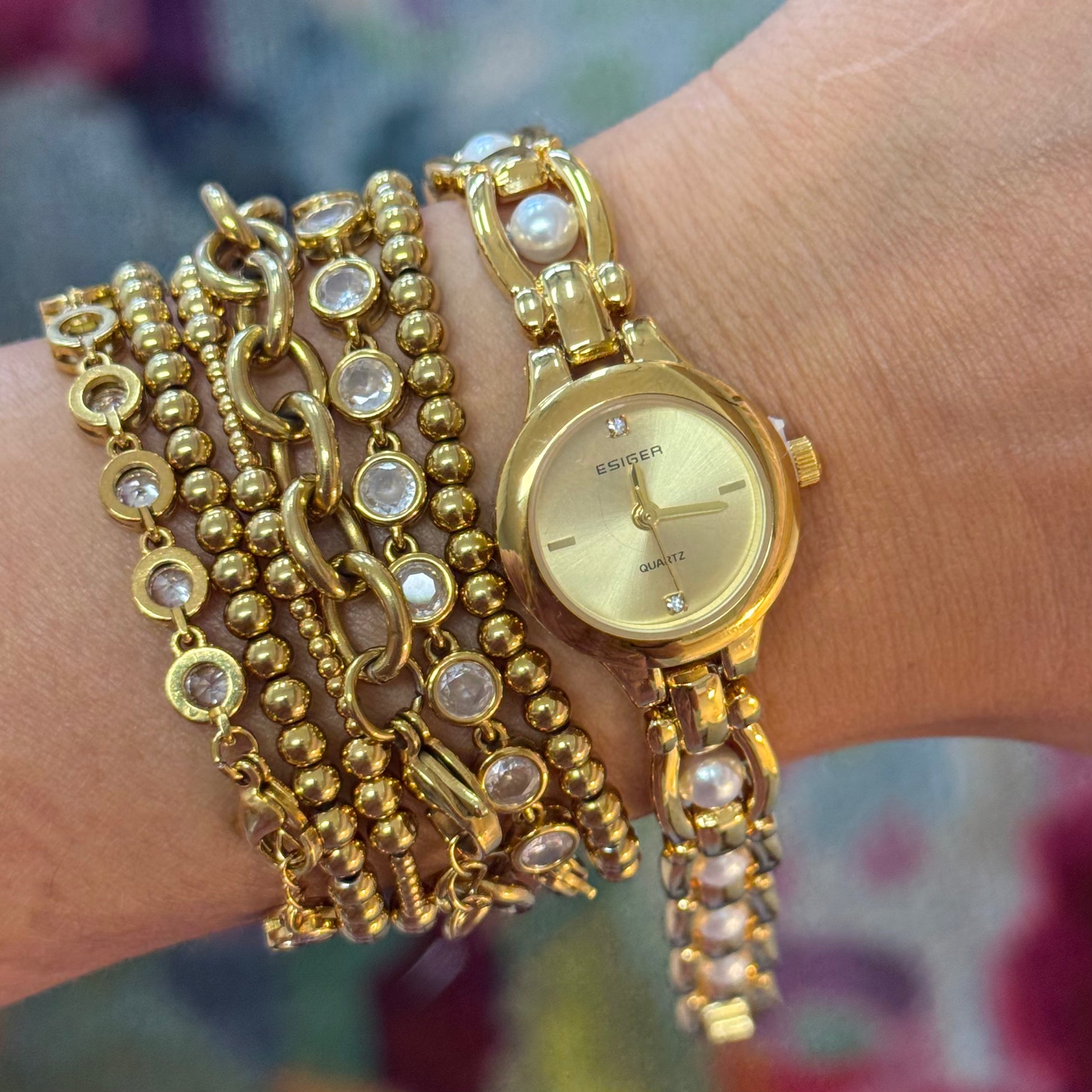 The clock is water resistant, however take it off when showering and do not submerge in water.