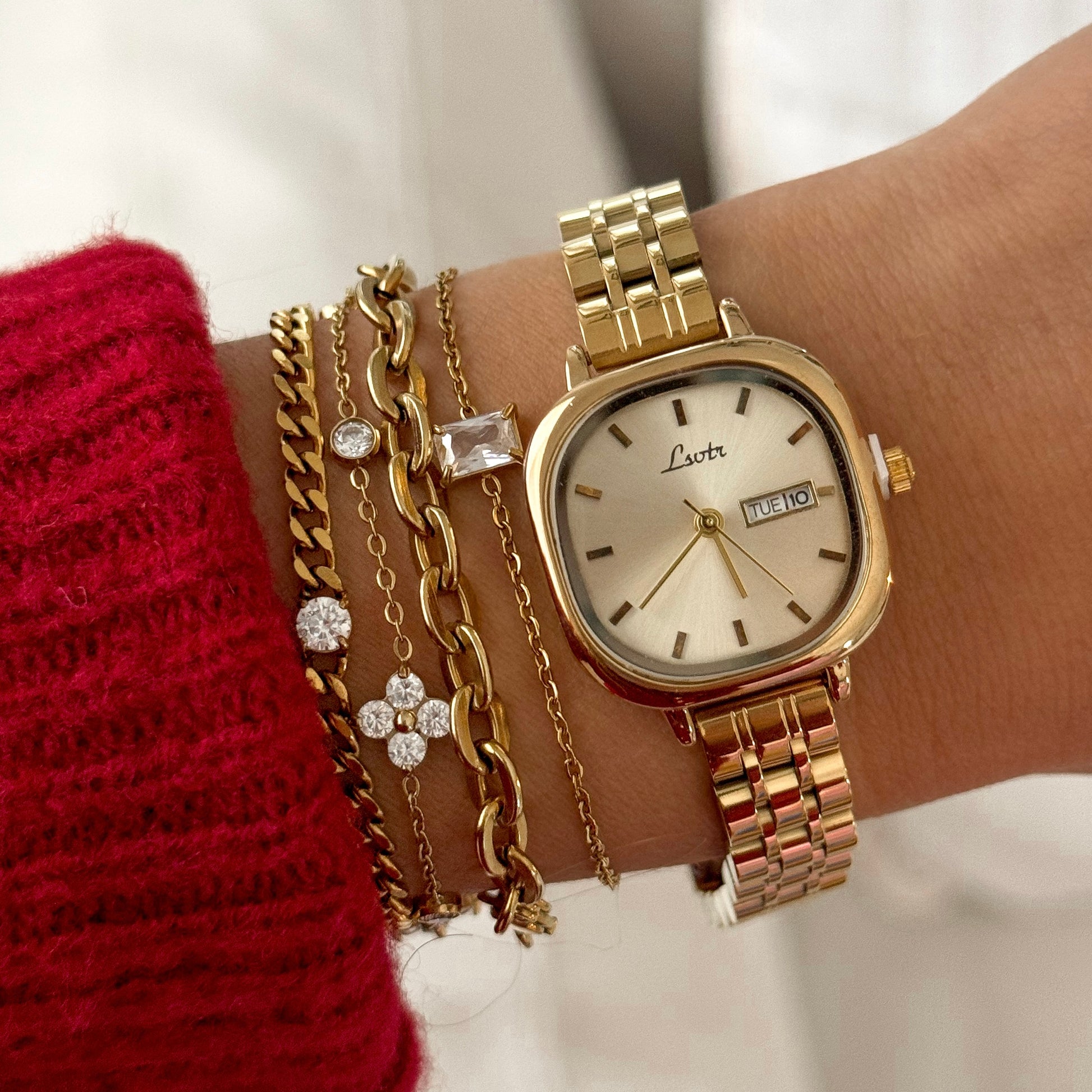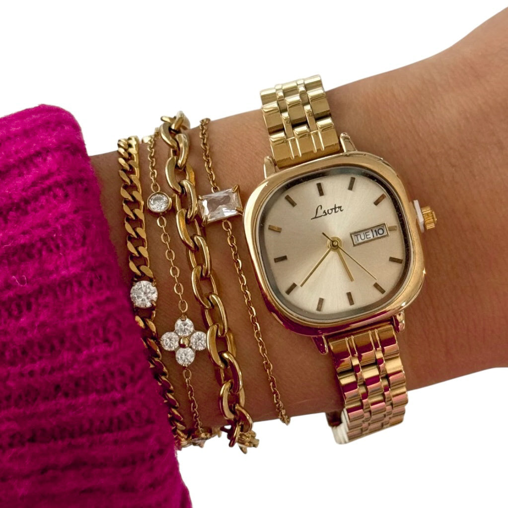 18k gold plated stainless steel watch - tarnish free.