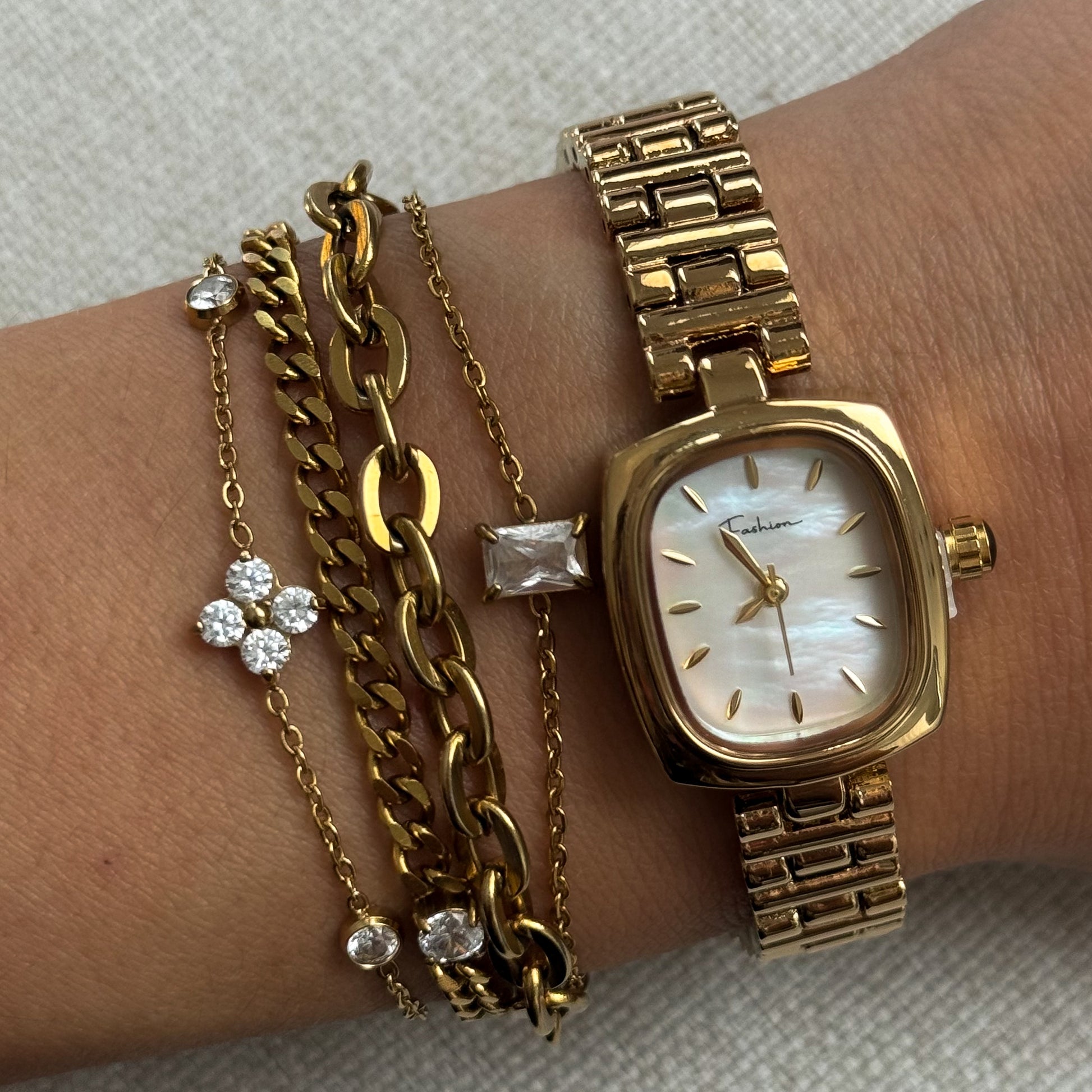 18k gold plated stainless steel watch - tarnish free.