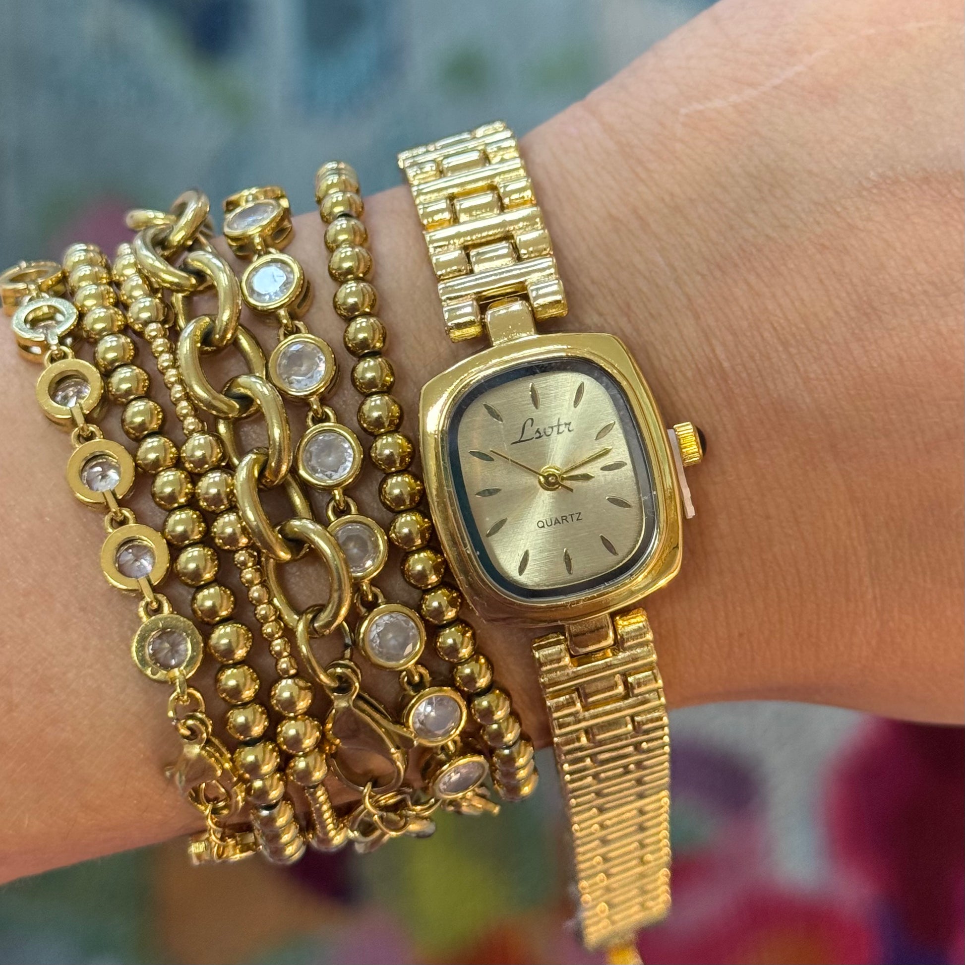 18k gold plated stainless steel watch - tarnish free.